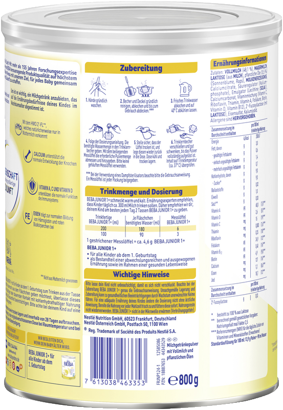 | 1 gestrichener Messlöffel = ca. 4,6 g BEBA JUNIOR 1+ | ||