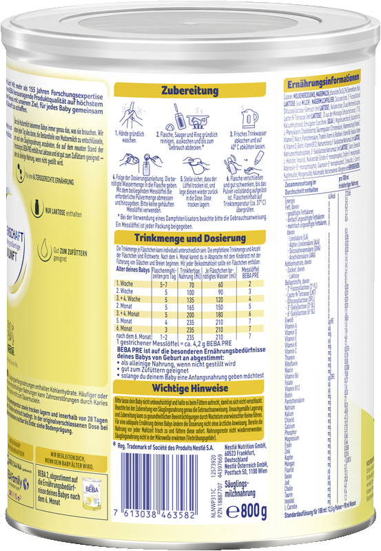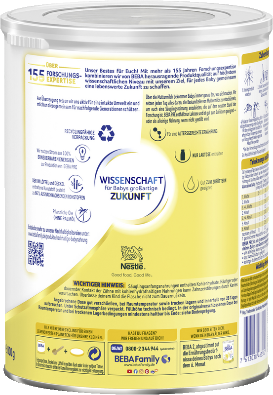 Mit BEBA haben wir eine Säuglingsmilch entwickelt, die selbstverständlich auf dem neuesten Stand der Forschung ist. Daran forschen und arbeiten wir seit über 155 Jahren. Denn die Sicherheit und das Wohl der Kleinsten haben für uns immer oberste Priorität. Darauf könnt ihr euch verlassen!