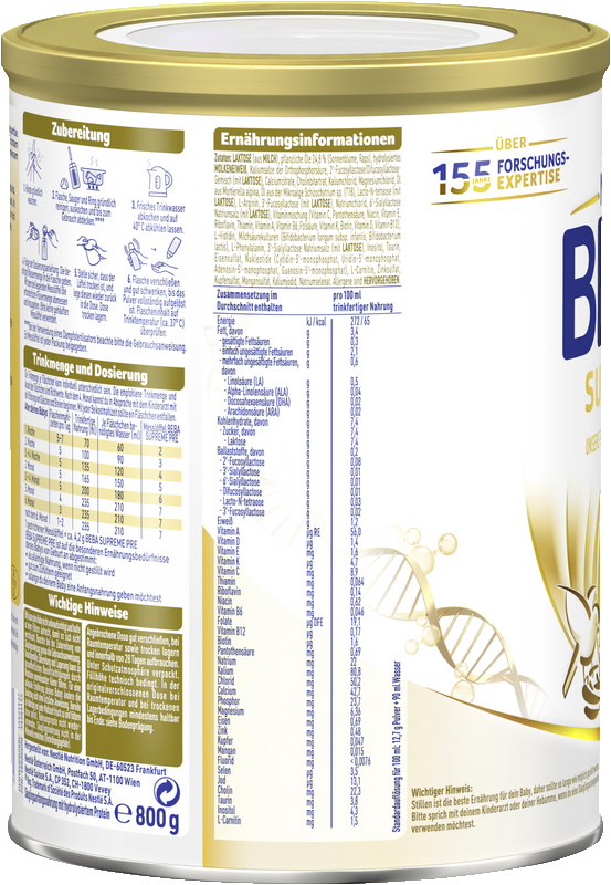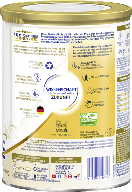 Mit BEBA haben wir eine Säuglingsmilch entwickelt, die selbstverständlich auf dem neuesten Stand der Forschung ist. Daran forschen und arbeiten wir seit über 155 Jahren. Denn die Sicherheit und das Wohl der Kleinsten haben für uns immer oberste Priorität. Darauf könnt ihr euch verlassen!