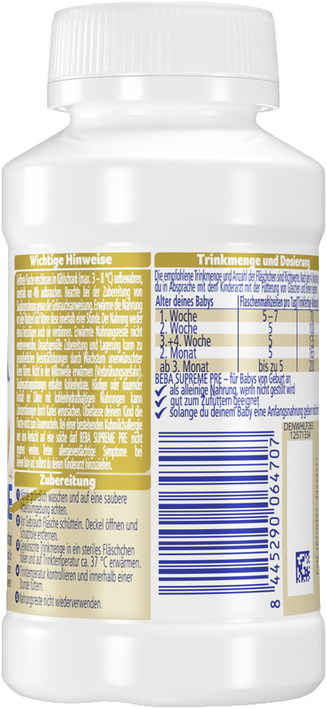 Beachte bei der Zubereitung von Säuglingsnahrung genau die Gebrauchsanweisung. Erwärme die Nahrung vor jeder Mahlzeit und füttere diese innerhalb einer Stunde. Der Nahrung nichts hinzufügen noch sie verdünnen. Erwärmte Nahrungsreste nicht wiederverwenden. Unsachgemäße Zubereitung und Lagerung kann zu gesundheitlichen Beeinträchtigungen durch Wachstum unerwünschter Keime führen. Nicht in der Mikrowelle erwärmen (Verbrühungsgefahr). Säuglingsanfangsnahrungen enthalten Kohlenhydrate. Häufiger oder dauernder Kontakt der Zähne mit kohlenhydrathaltigen Nahrungen kann Zahnzerstörungen durch Karies verursachen. Überlasse deinem Kind die Flasche daher nicht zum Dauernuckeln.